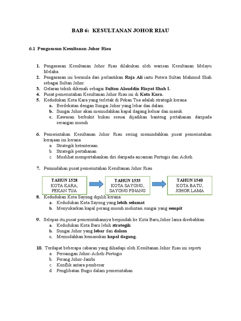 Nota Ringkas Dan Padat Sejarah Tingkatan 2 Bab 6 Kesultanan Johor Riau Youtube